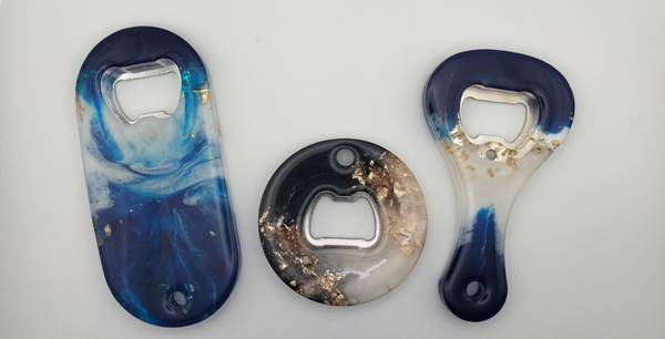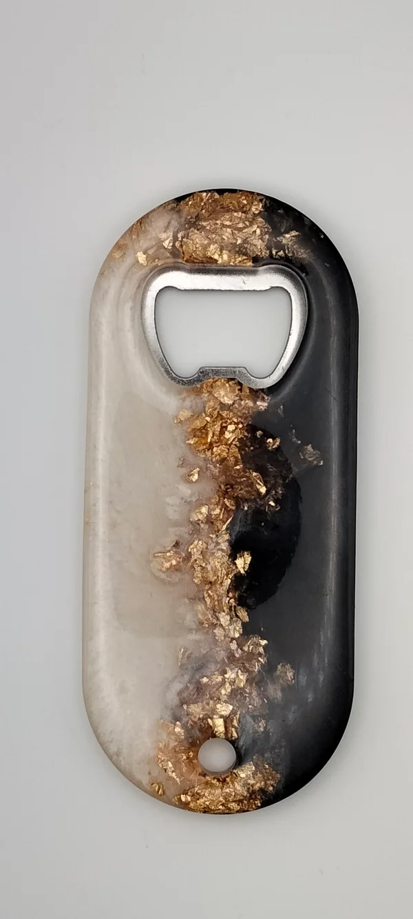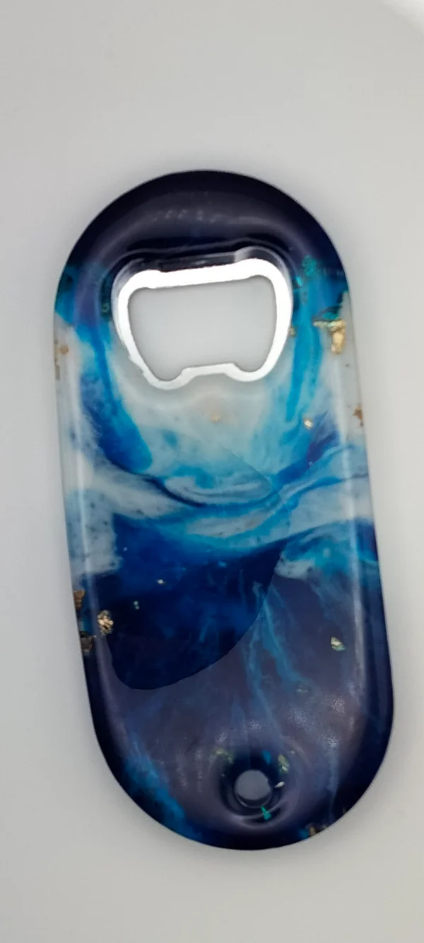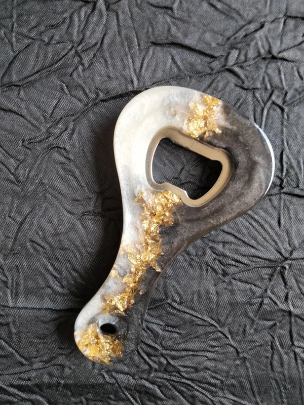 Décapsuleur en résine époxy effet marbre.