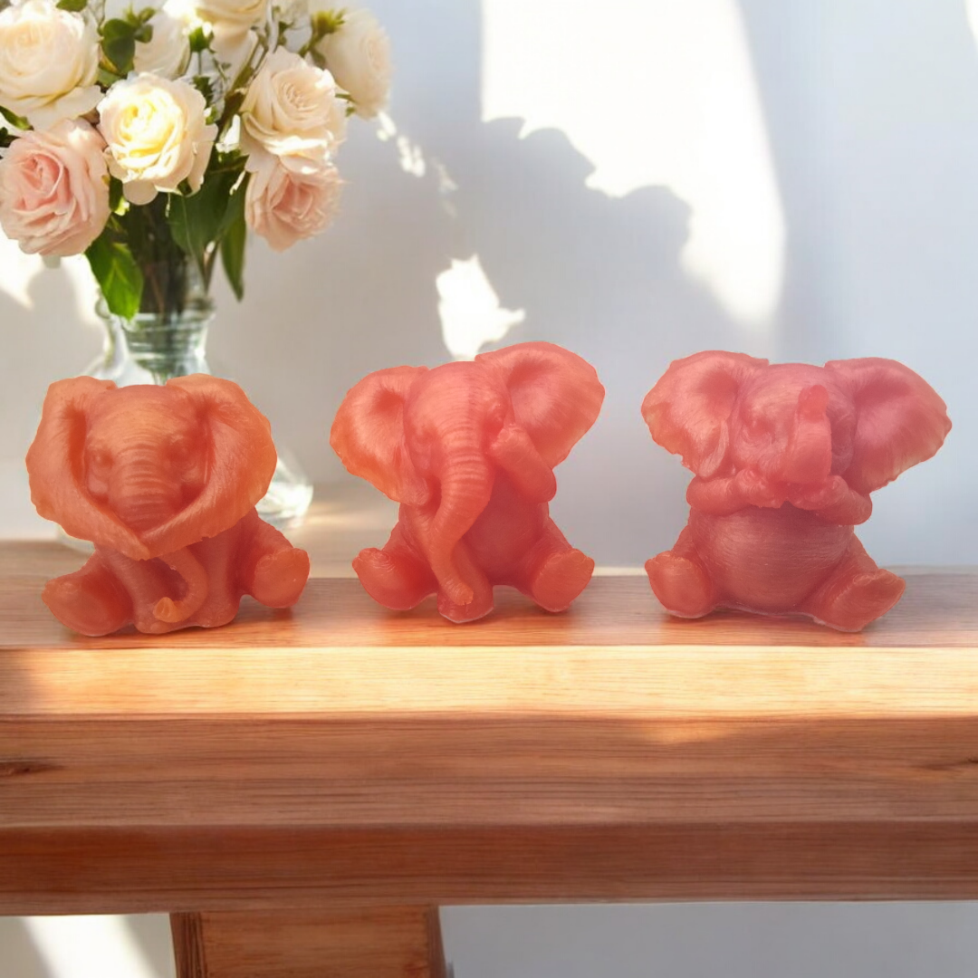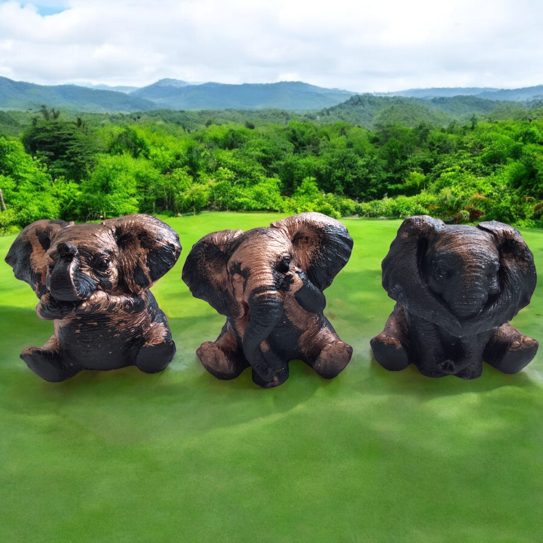 Lot de 3 éléphants en résine époxy avec inclusion de colorants.