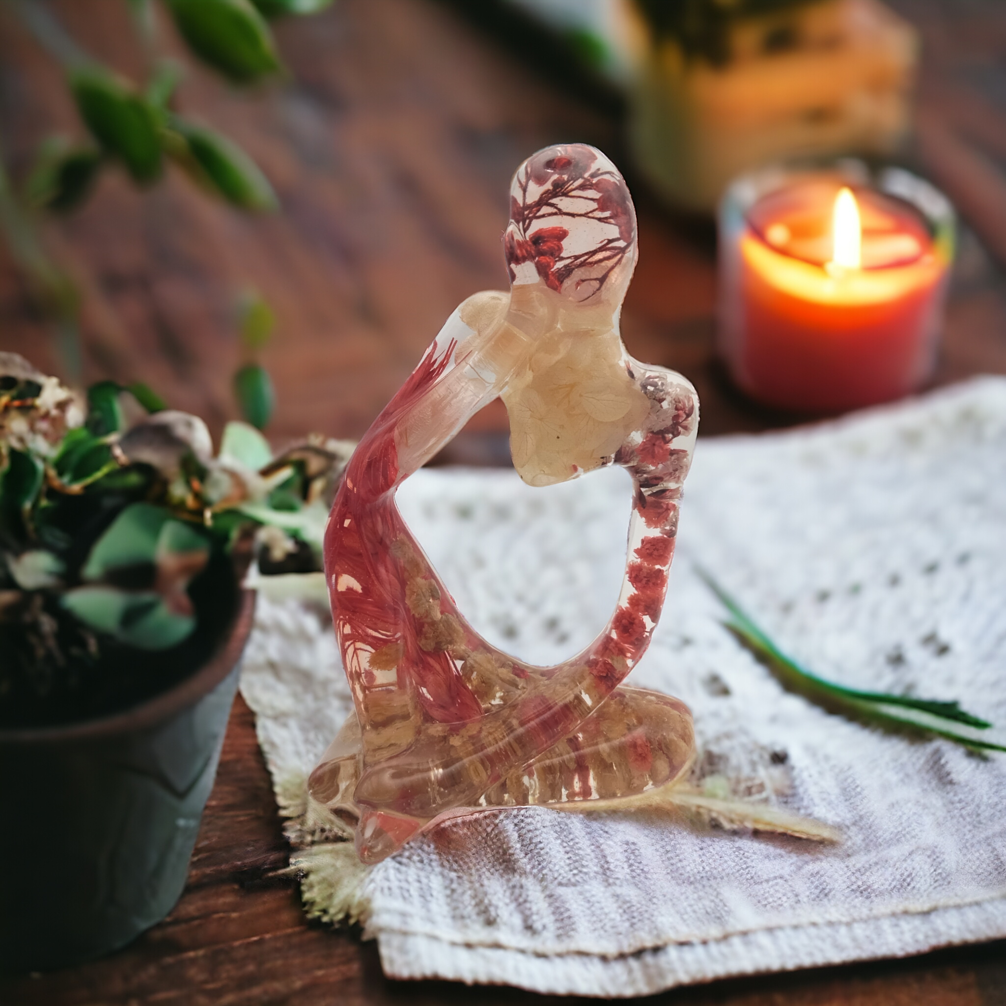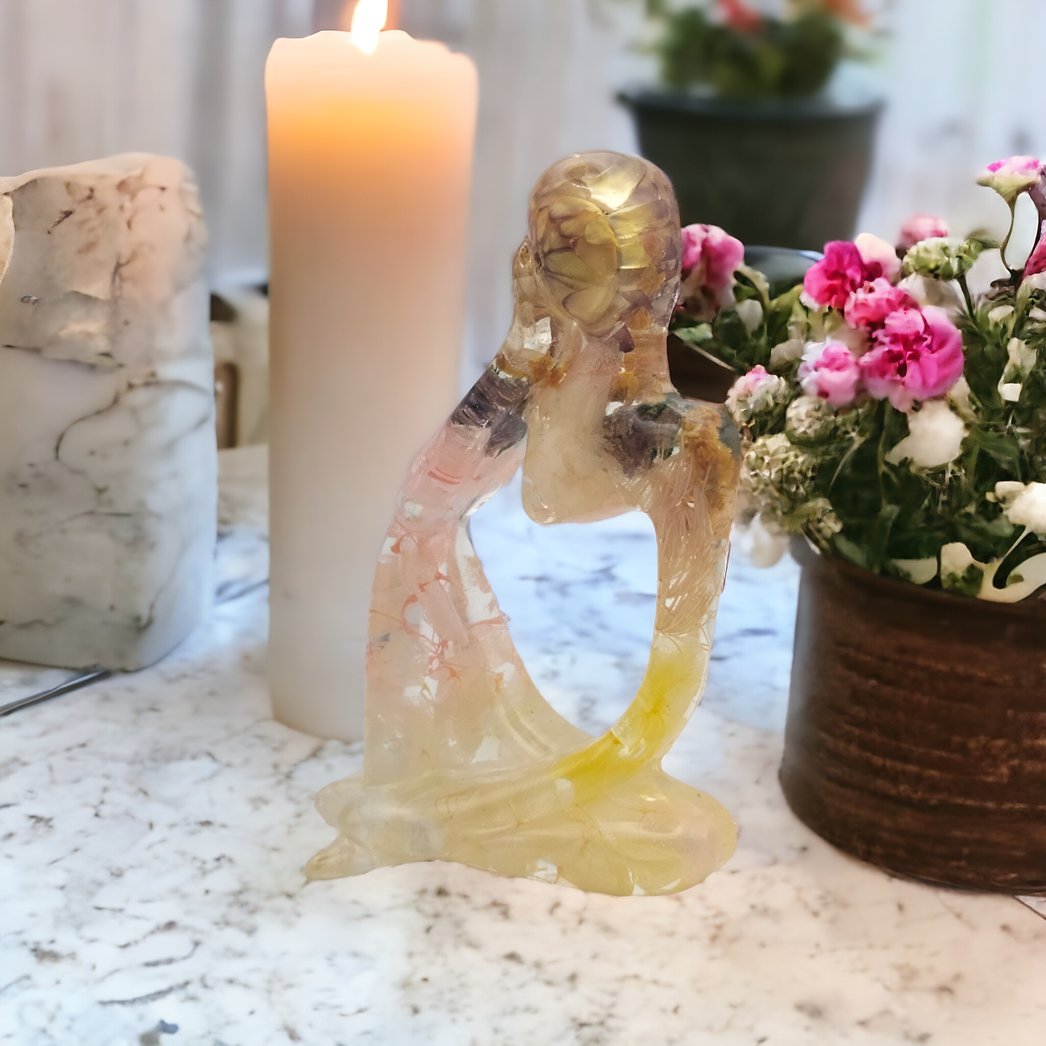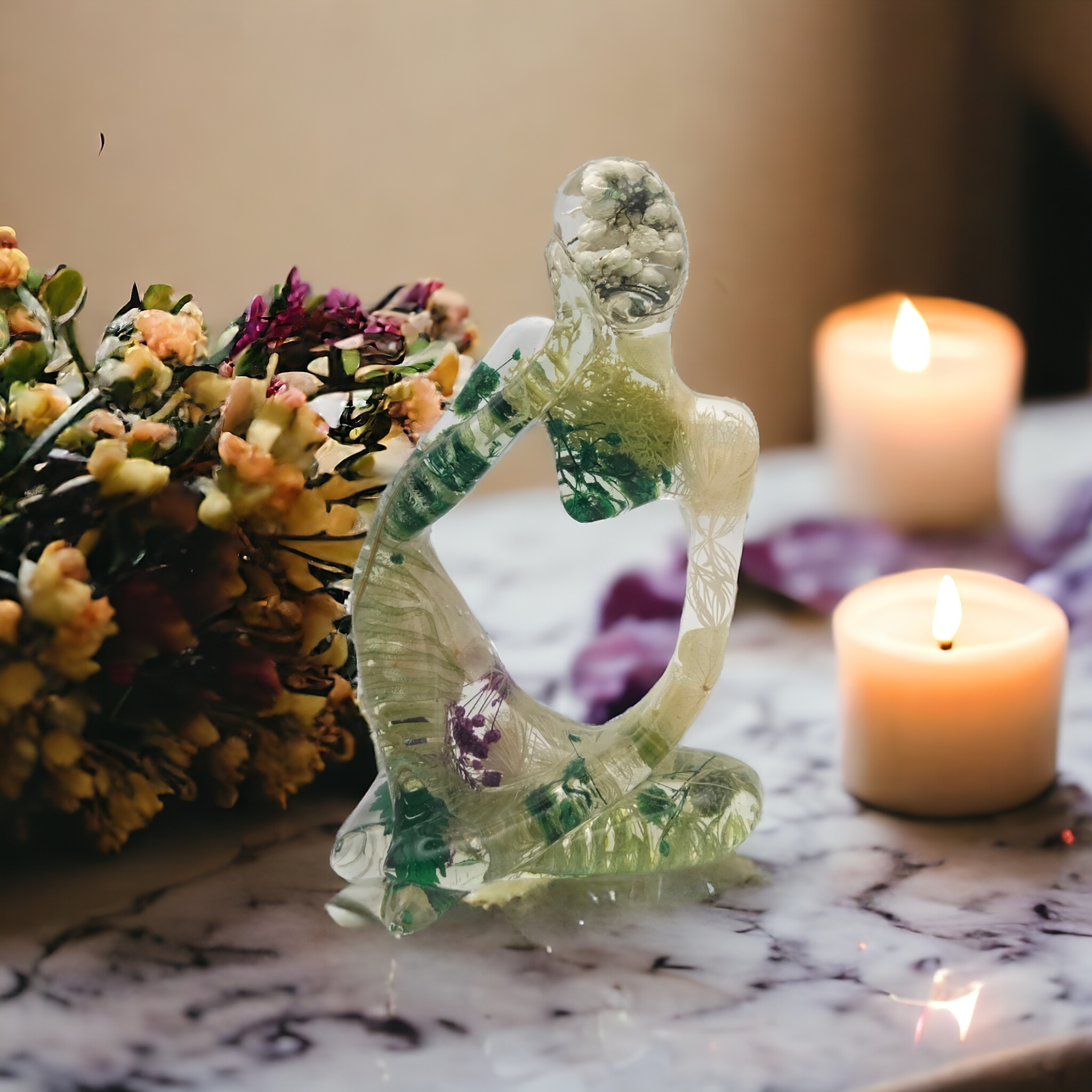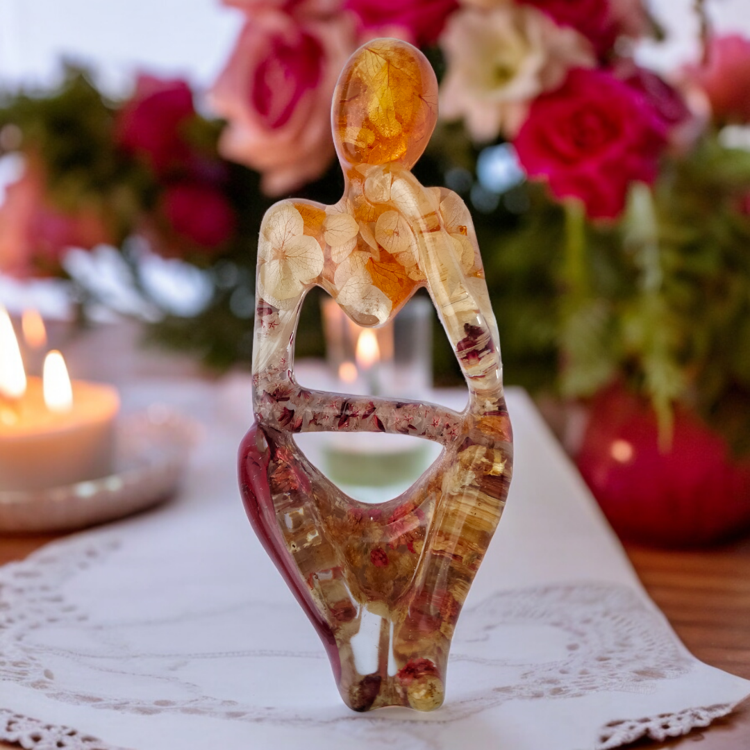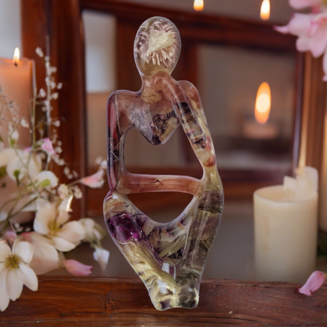 Penseuses en résine époxy avec inclusion de fleurs séchées.