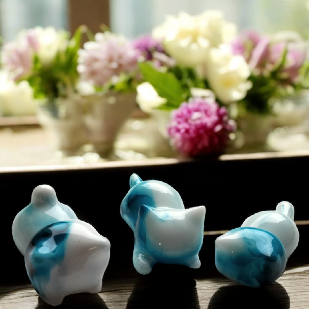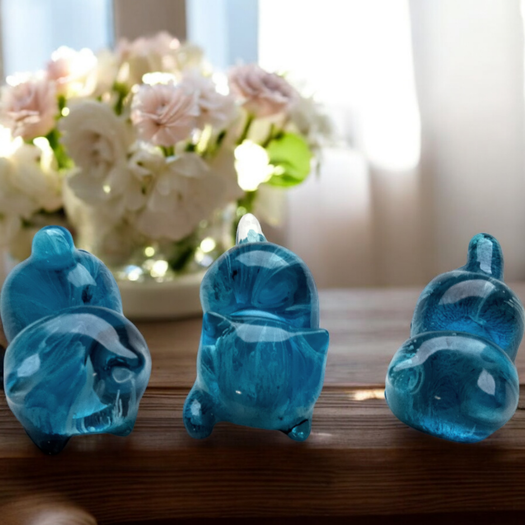 Lot de 3 petits chats en résine époxy. Ils peuvent servir de porte-couteau.