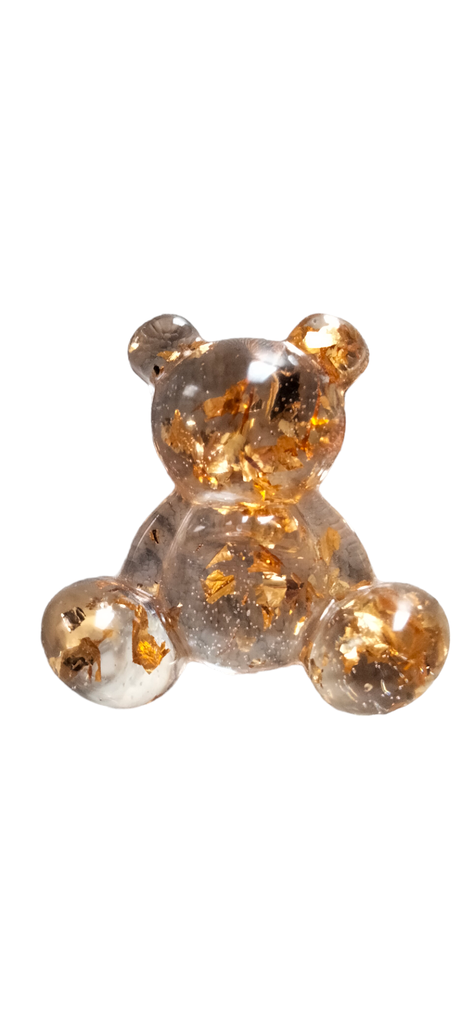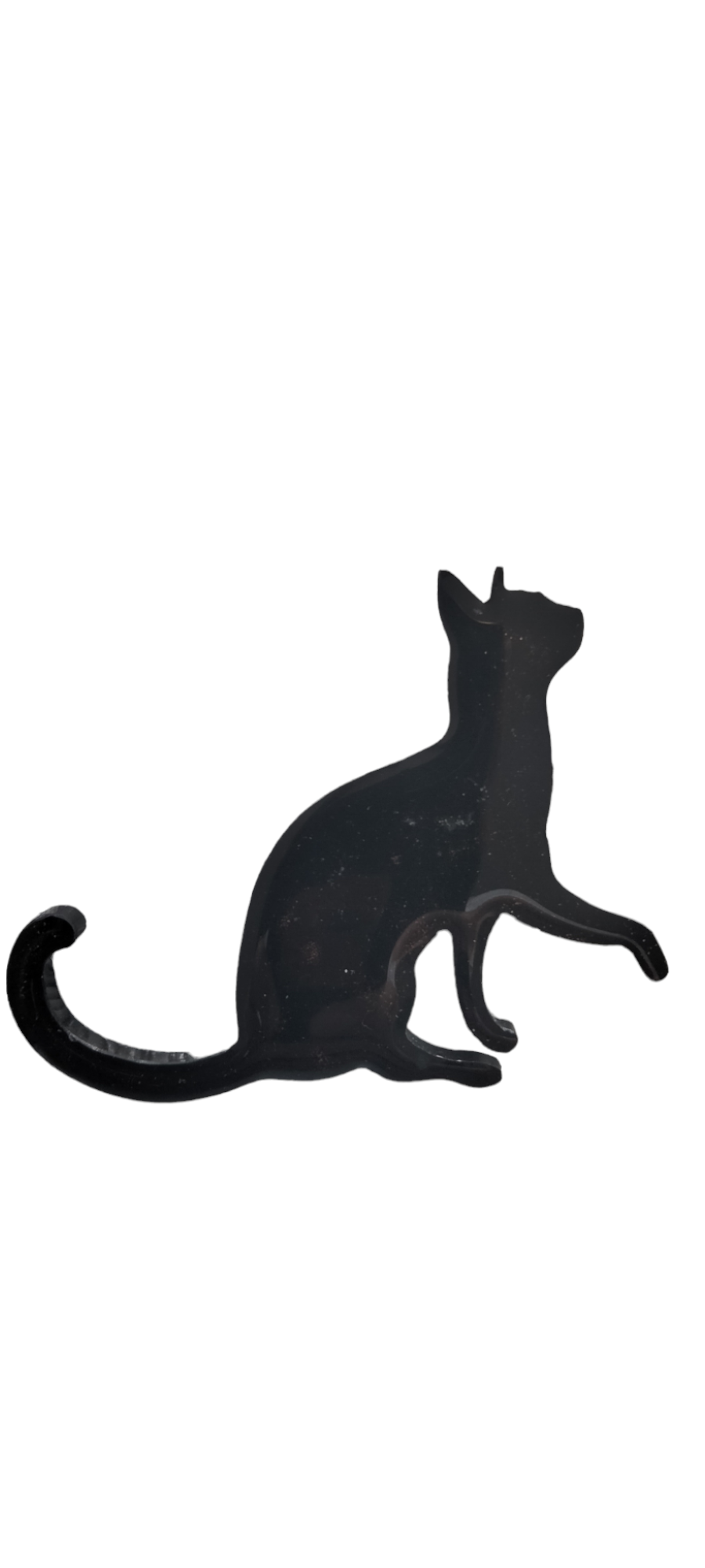 Magnets chat en résine epoxy avec inclusion de colorant, de paillettes ou de feuilles d’or.