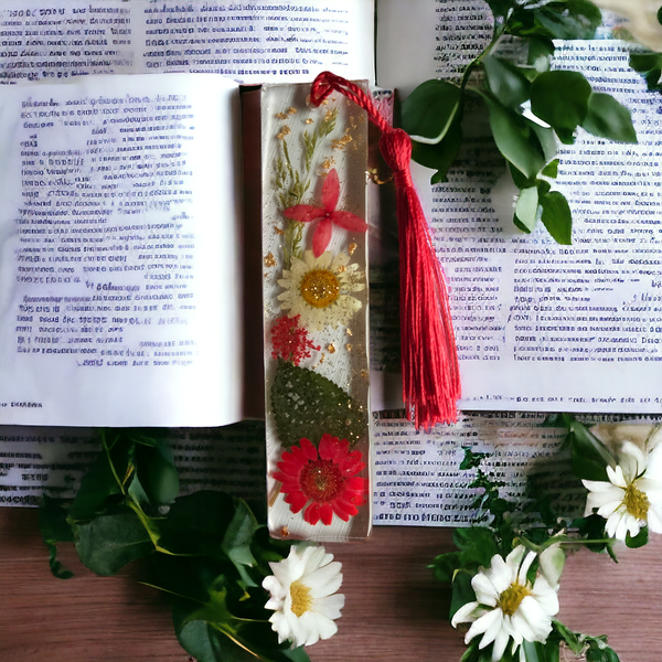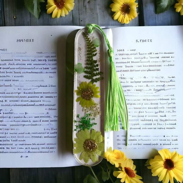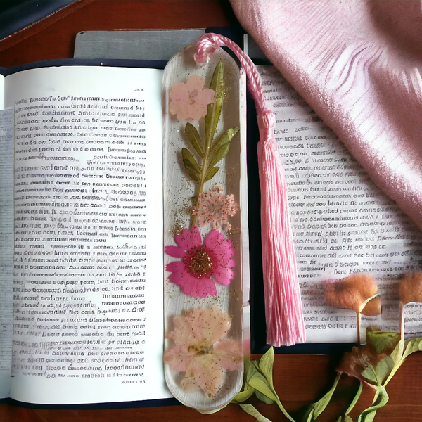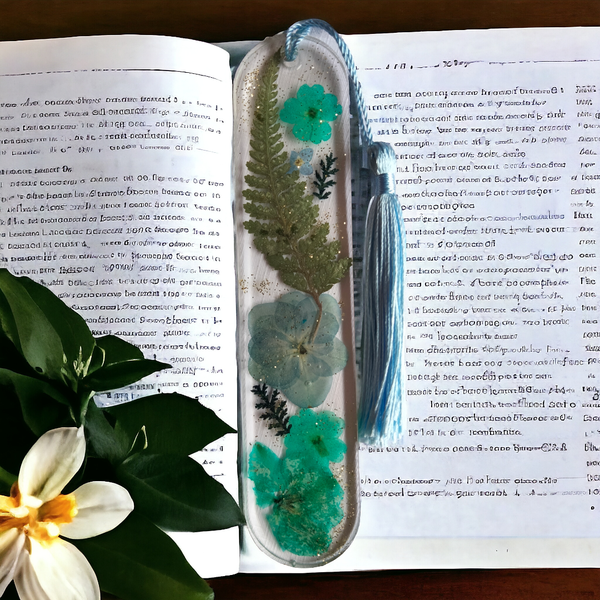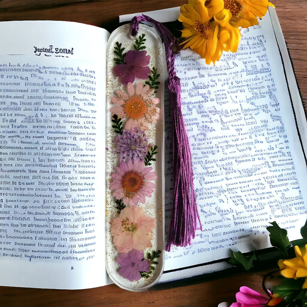 Très jolie marque pages en résine époxy avec inclusion de fleurs séchées.