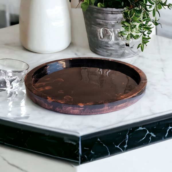 Plateau à rebord diamètre 30cm en résine époxy.