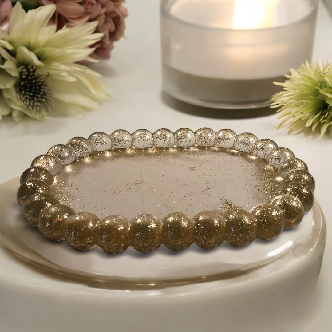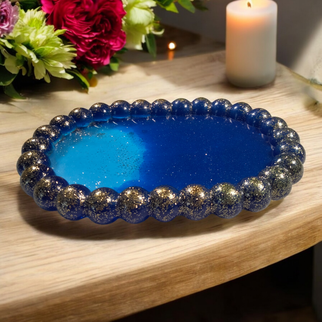 Plateau ovale à bulles en résine époxy.