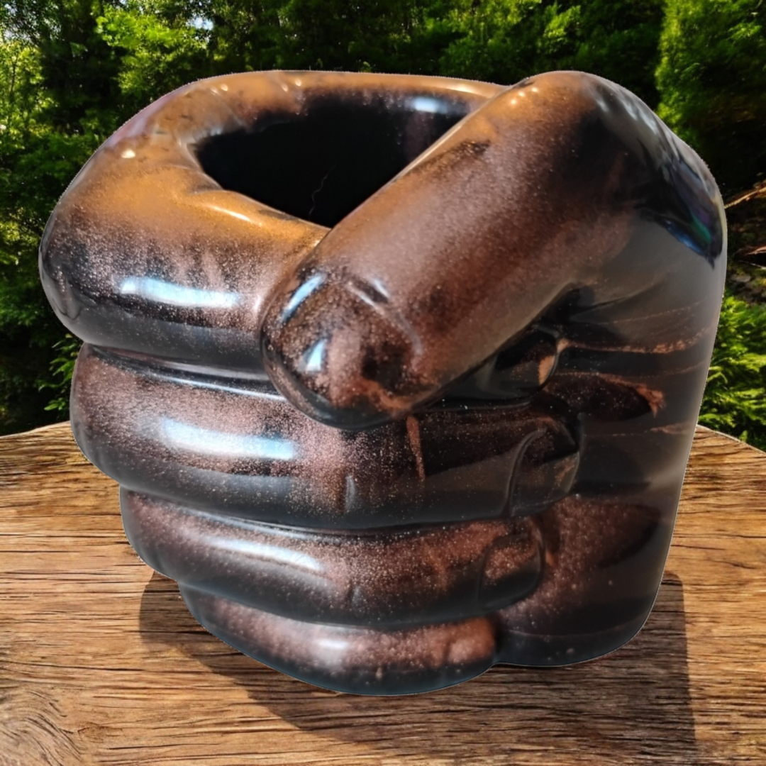 Pot main en résine époxy avec inclusion de colorant.