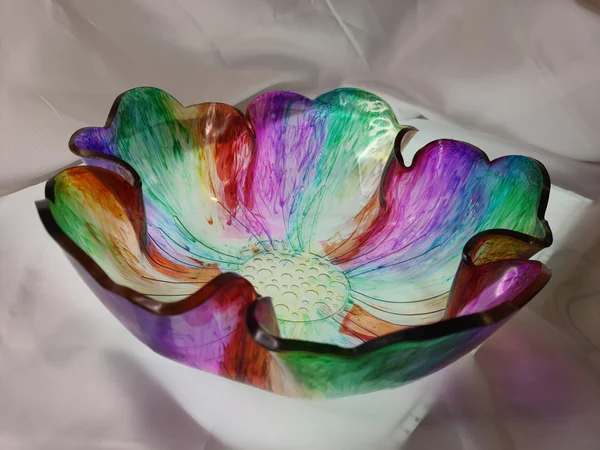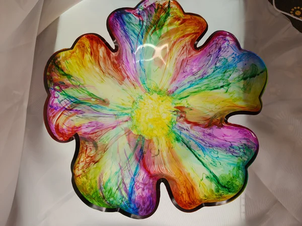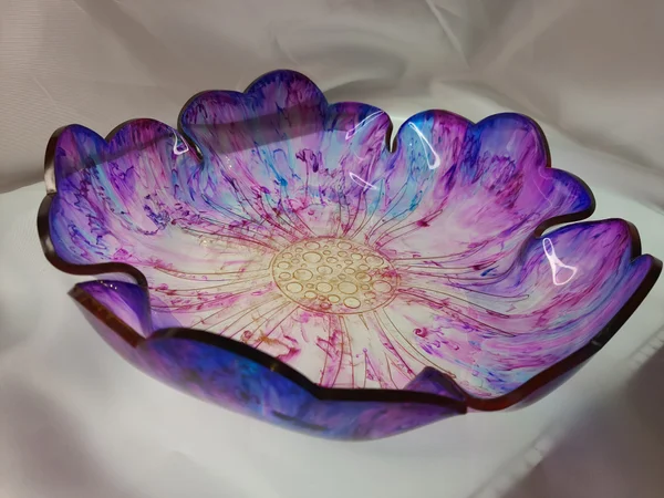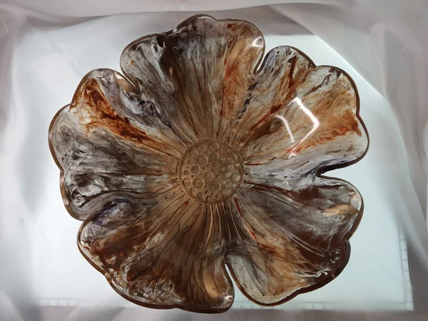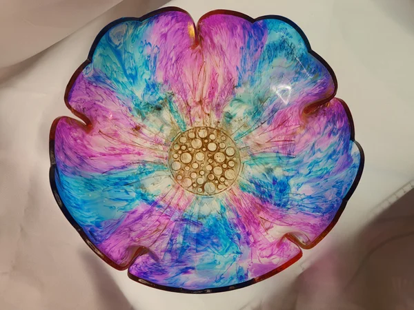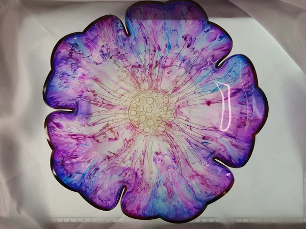Saladiers fleurs en résine époxy avec inclusion d’encre à alcool.